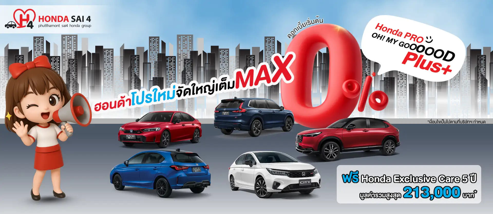 โปรฯเด็ดตามใจ ดอกเบี้ย 0% ที่ให้คุณเลือกได้เอง พร้อมของแถมมากมายจัดเต็มที่ฮอนด้าสาย 4